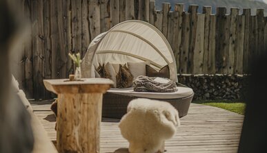 Skifahren in Gröden - Seiser Alm - Sellaronda. Zauberhafter Wellnessbereich mit Whirlpool im Garten. Gratis Bus ins Skigebiet. Aufenthalte ab 1 Tag möglich.