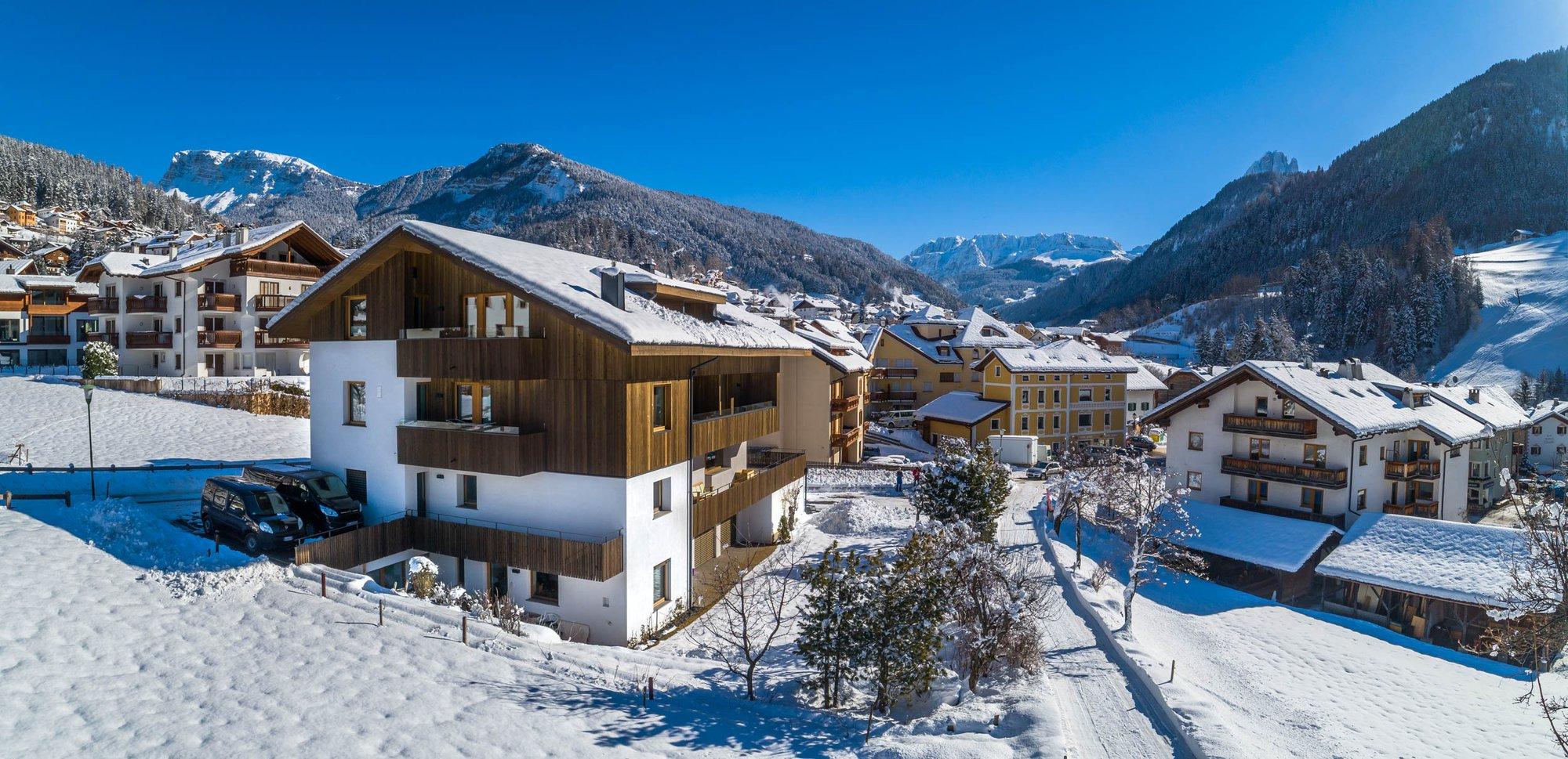 Im Winter gelangst Du mühelos zu den Aufstiegsanlagen des Dolomiti Superski und der berühmten Sella Ronda.
