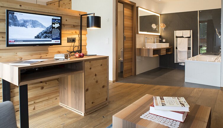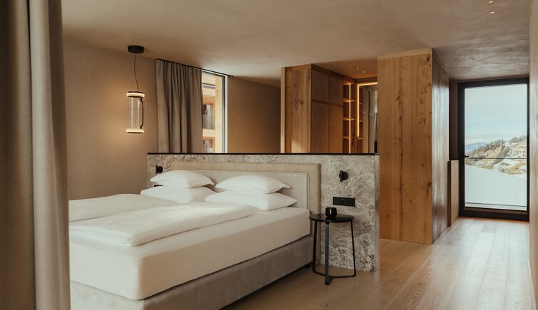 Ein Ort der Stille und der Kraft mit 15.000 m² Privatgarten mit Parkanlage und einzigartiger 360° Fernsicht auf die Südtiroler Dolomiten.