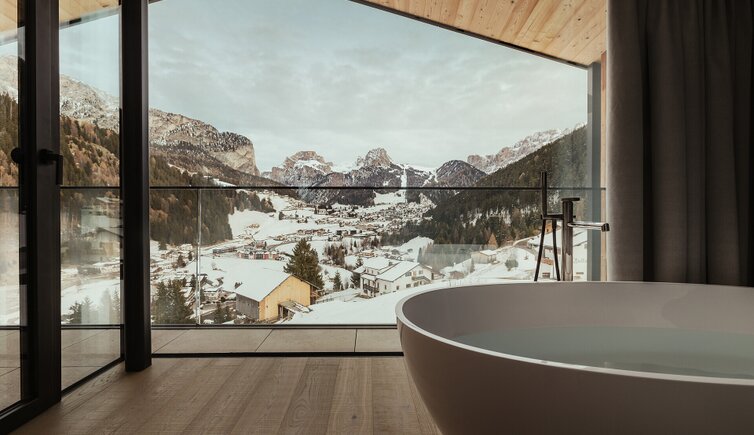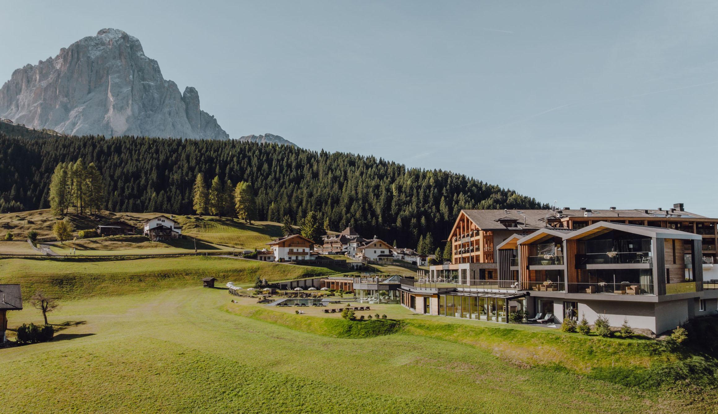Dominierend auf einem Sonnenplateau oberhalb Wolkenstein in Gröden liegt das "Granvara® Relais & SPA Hotel *****".