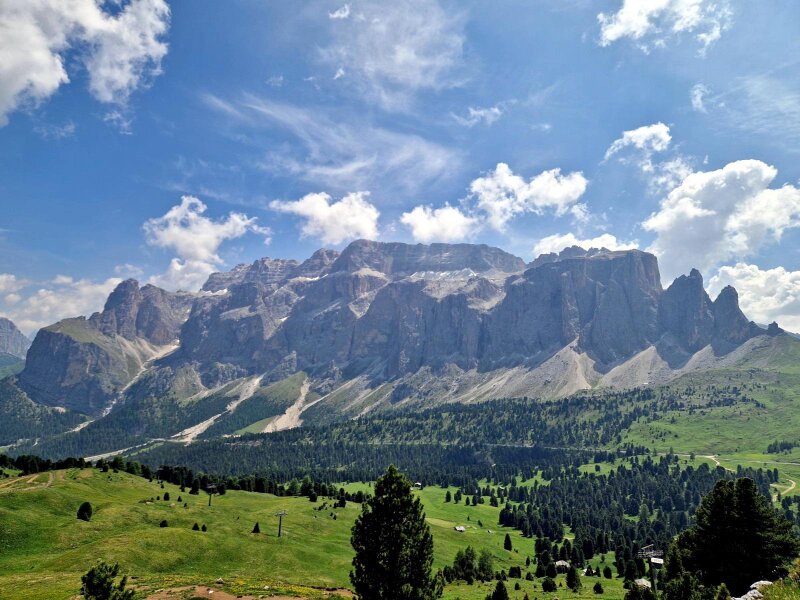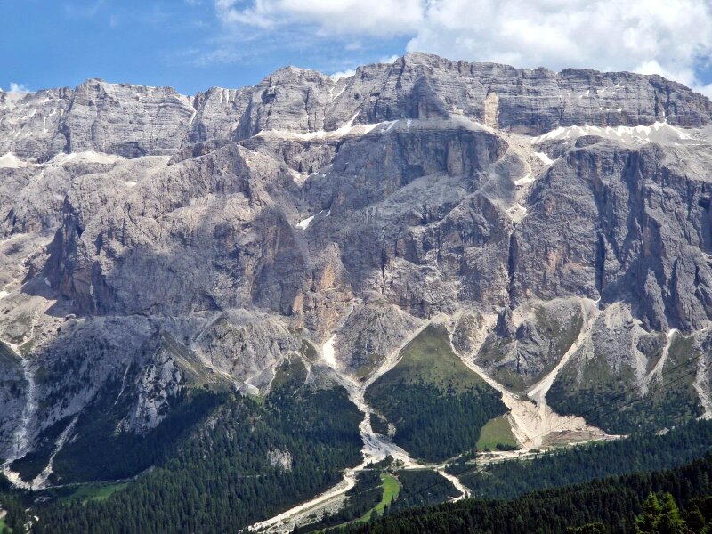 From the Plan de Gralba you can perfectly see the enormous alpenstock of the Sella Group, or simply Sella, with its Sella Towers