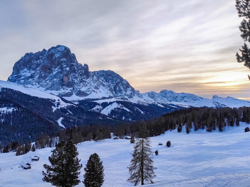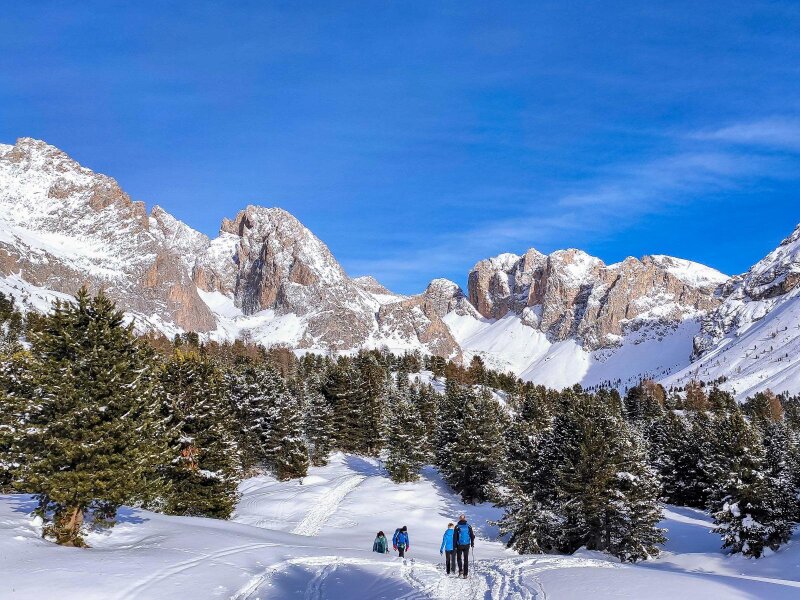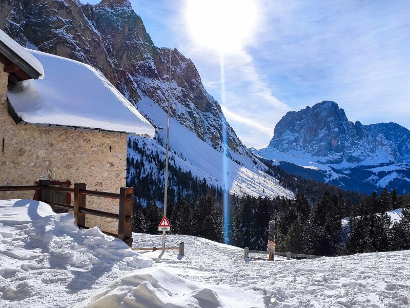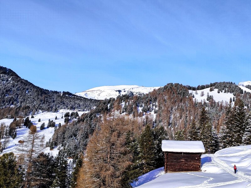 Per un’escursione invernale a dicembre scegliamo la Val Gardena e la “zona malghe più bella della valle”, il Col Raiser