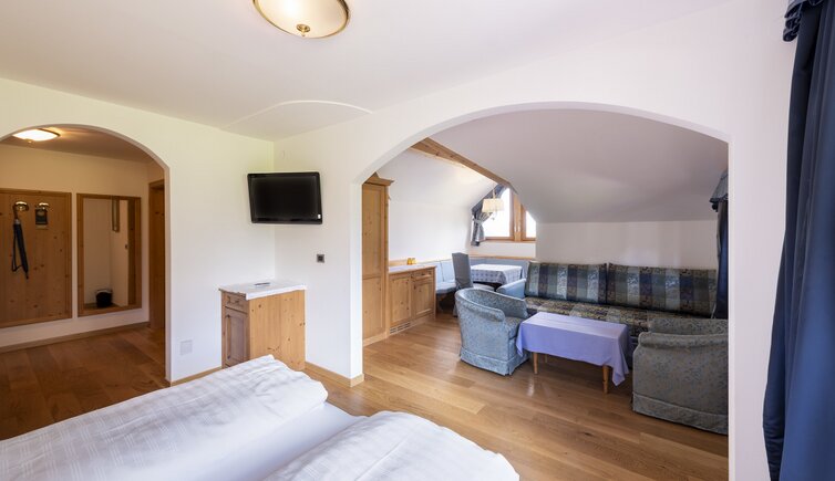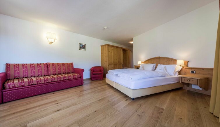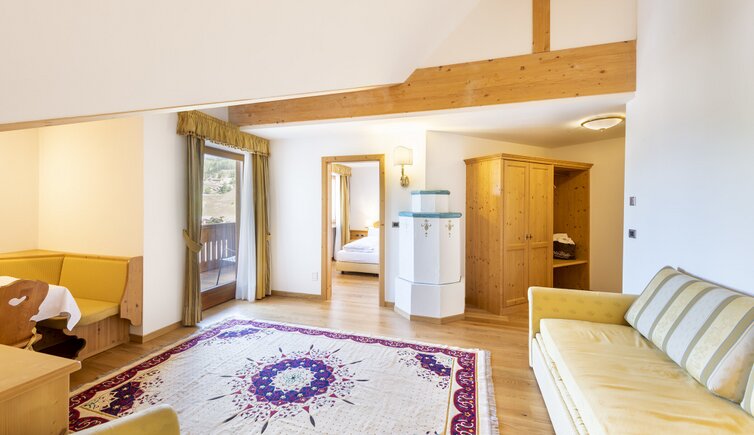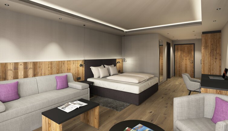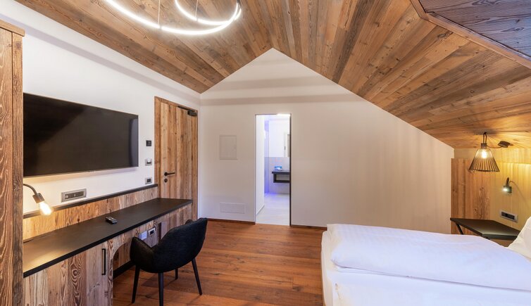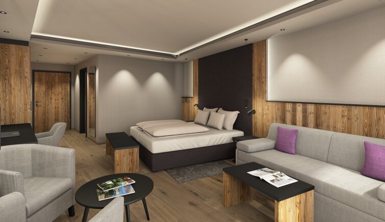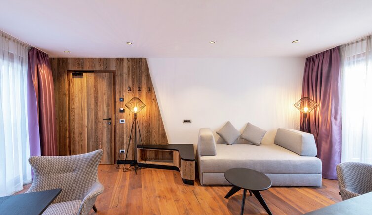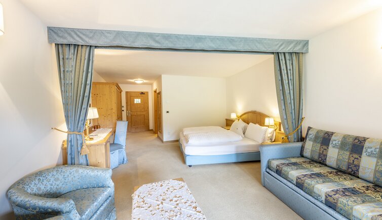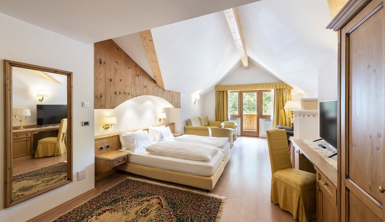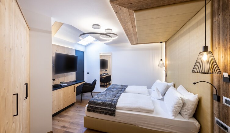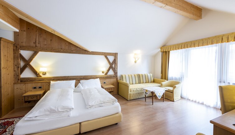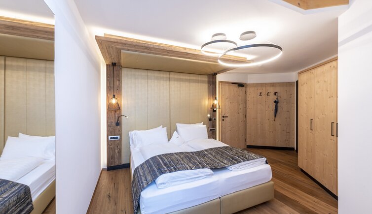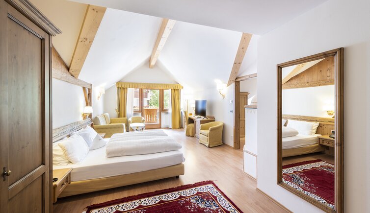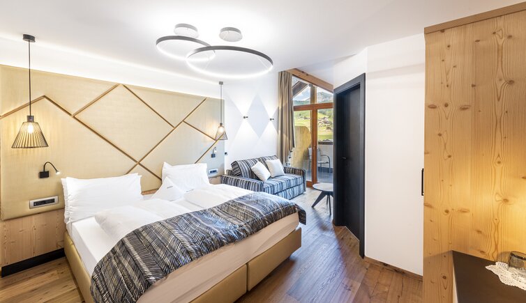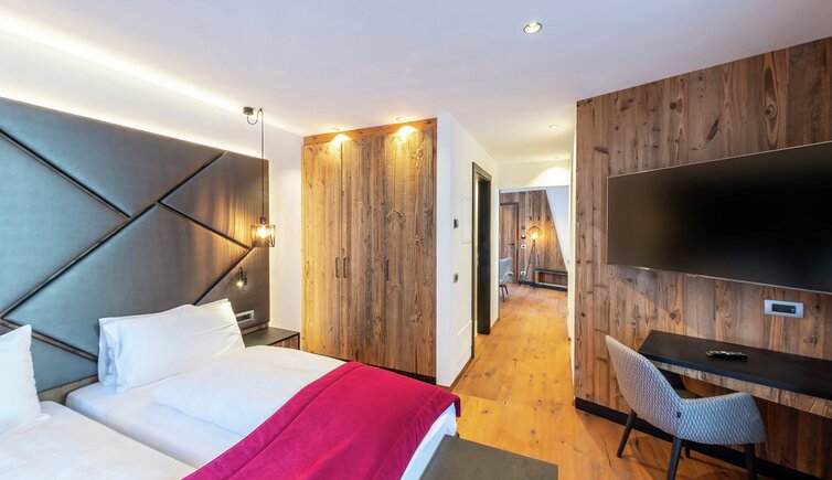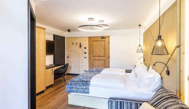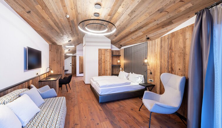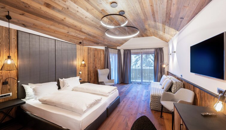 Le camere e le suite dell’hotel si distinguono per la loro ampiezza e per gli arredi di alta qualità. Ti offrono tutto lo spazio necessario per sentirti a tuo agio e rispecchiano il carattere alpino del paesaggio circostante.